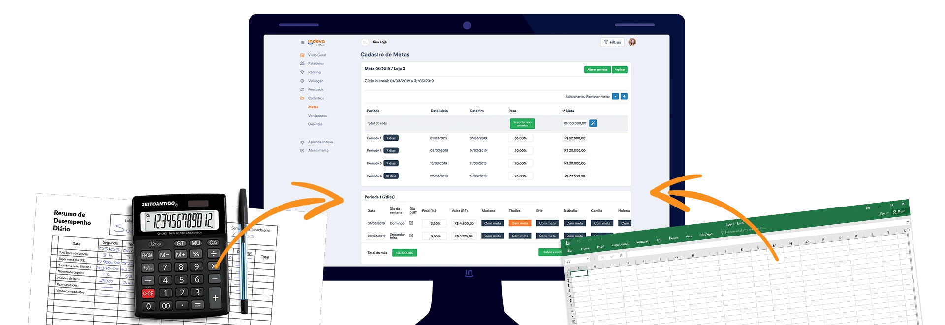 Gerenciar metas ficou muito mais fácil. Chega de papel, caneta e horas com planilhas complicadas!
