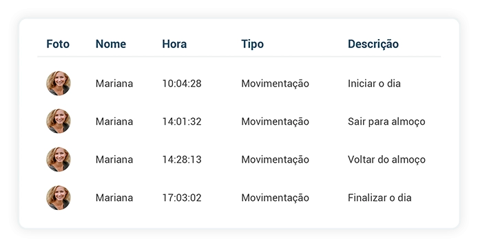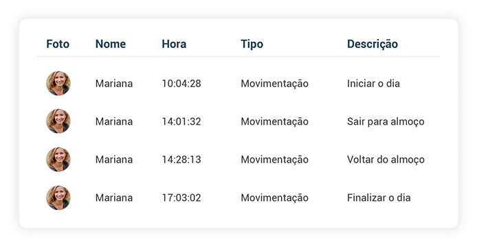 As movimentações da Lista da Vez registram todos os horários de entrada e saída do seu time de vendas.