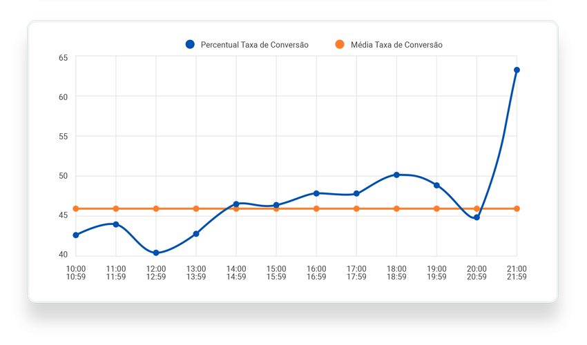 Descubra o horário de maior fluxo de atendimentos e compare com a taxa de conversão. Assim, só de bater o olho, fica fácil saber em quais horários há maior perda de venda!