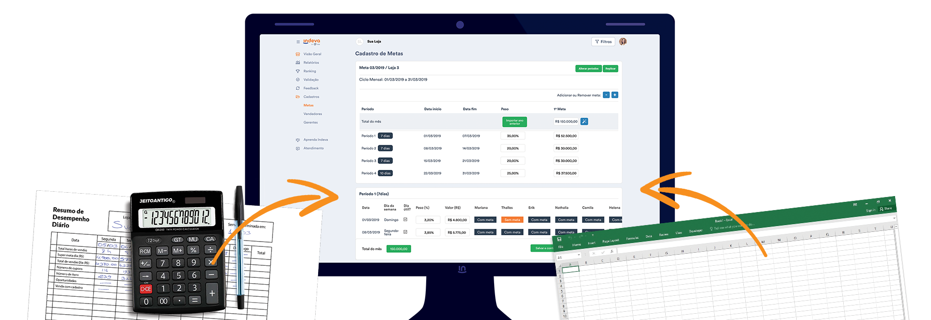 Gerenciar metas ficou muito mais fácil. Chega de papel, caneta e horas com planilhas complicadas!